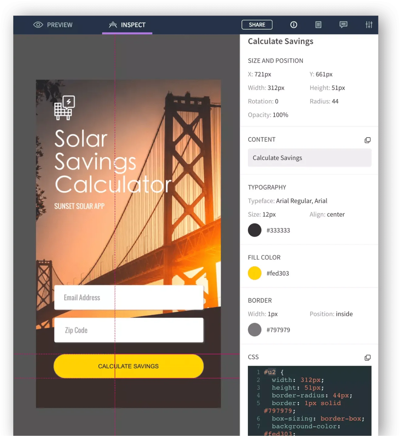 From lightweight automated redlines to a complete annotated specification, Axure Cloud lets you hand off to developers in the way that’s right for you. Present a complete picture, including documentation, UX prototypes, redlines and visual design assets with CSS export.