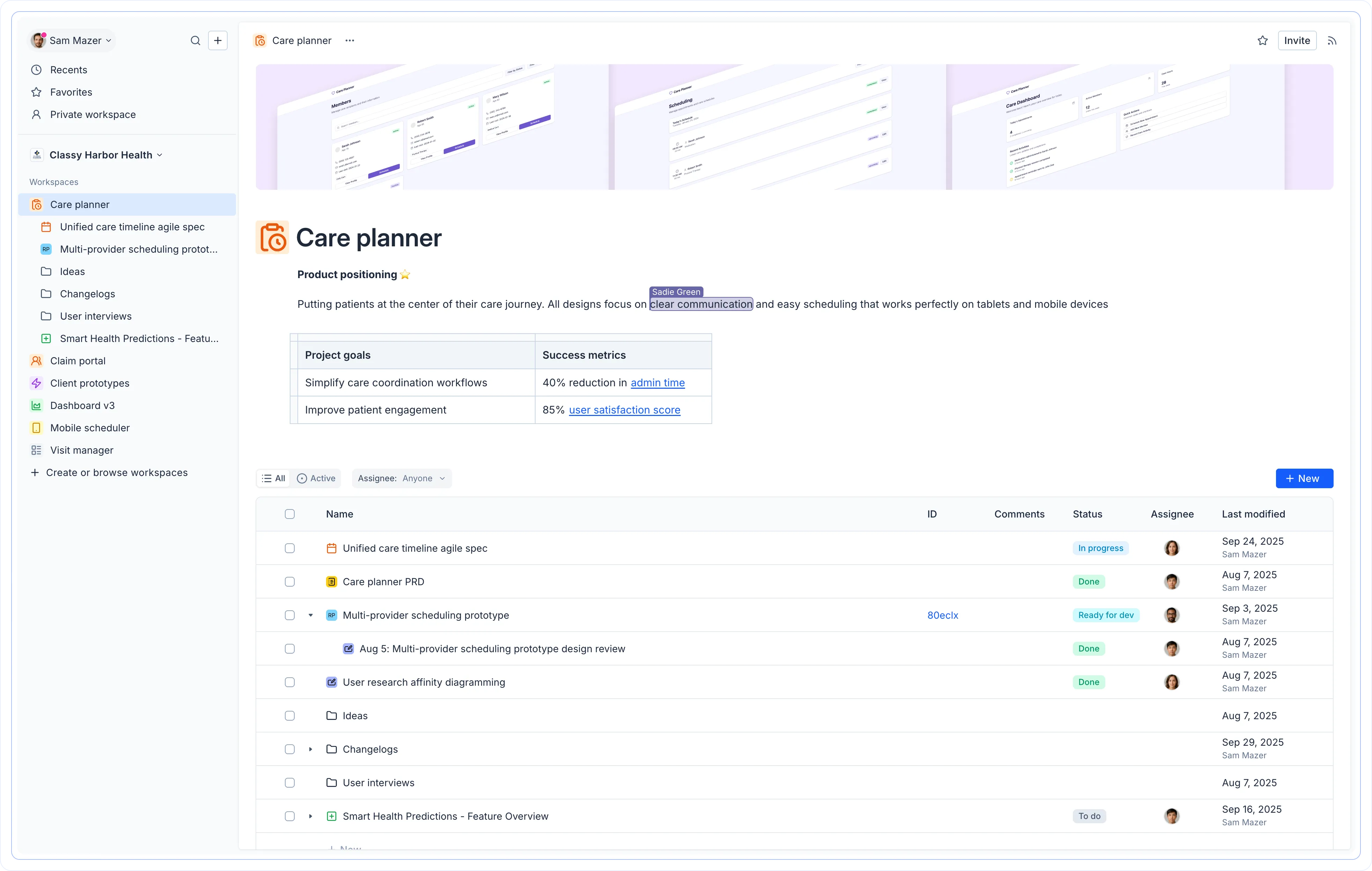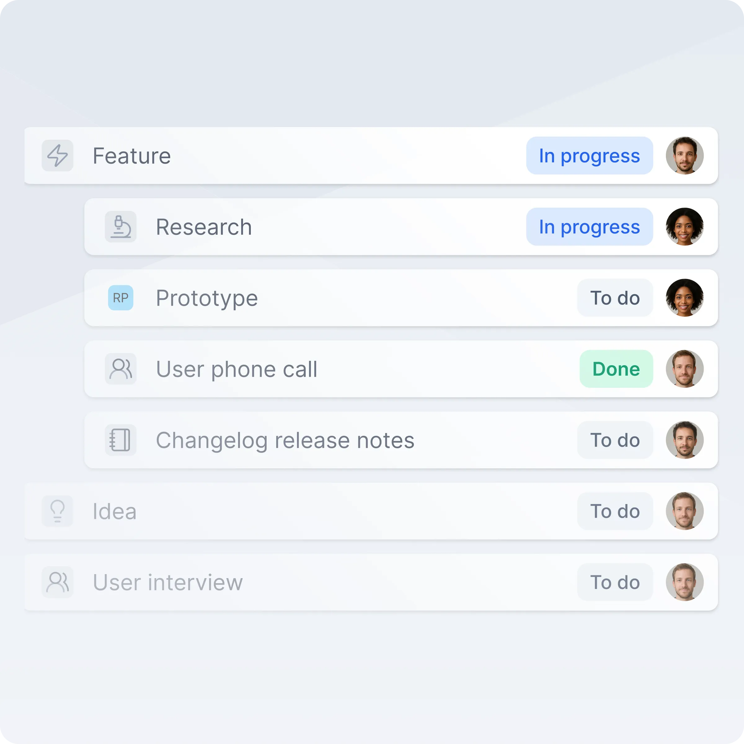 Easily track the status and assignee of your product ideas, solutions, and specifications in one place.