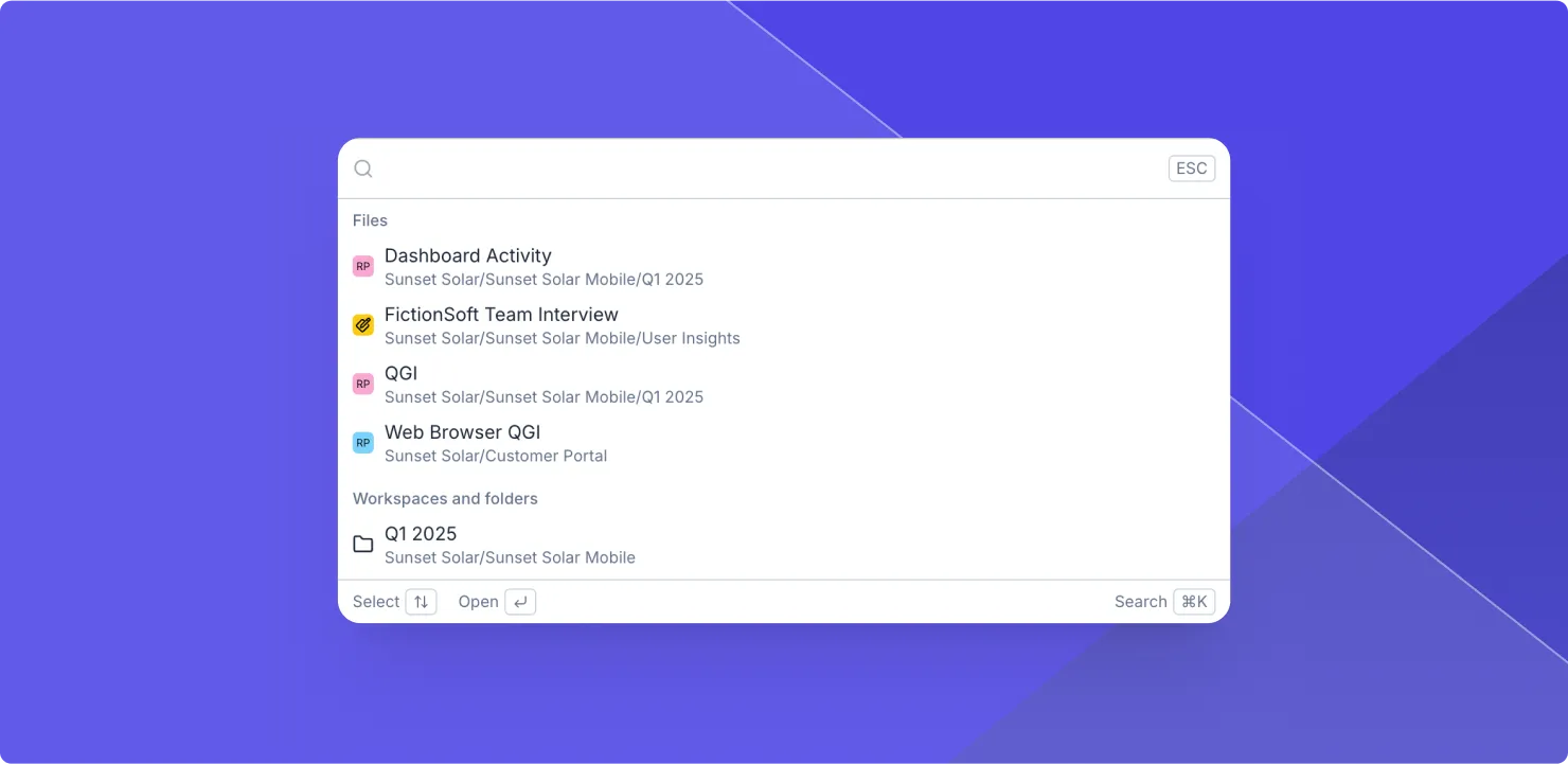 Finding a prototype or file is now just a keystroke away. Use the Cmd + K shortcut on Mac or Ctrl + K on Windows to quickly search for files, folders, and workspaces.