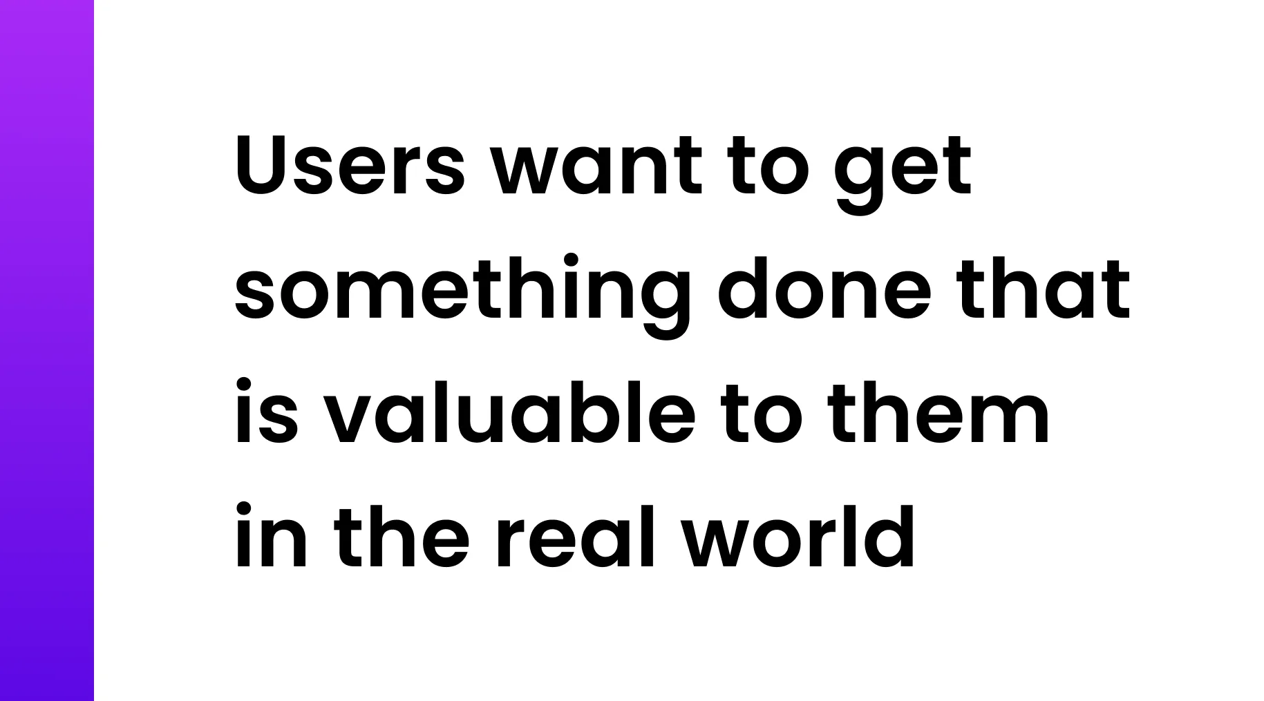 Users want to get something done that is valuable to them in the real world whether that's an actual task or something more emotionally-driven. For example, real world value from a Human Resources application might be achieved when an employee quickly gets official approval for time off so they can plan their vacation. It would be disappointing if a feature made it easy to request time off but left the request sitting in a manager's inbox for weeks. Am I supposed to remind my manager to approve it now? Sigh.