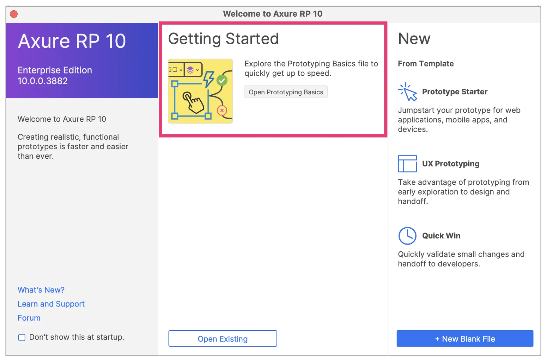 From the Welcome Screen, you can open the Prototyping Basics file for some exercises to get started.