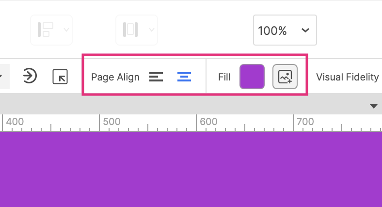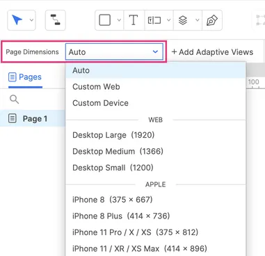 In the Style Toolbar or Style Pane, you can style your pages, such as changing the background color or page alignment. You can also change the page size to match the device or viewport you’re designing for.