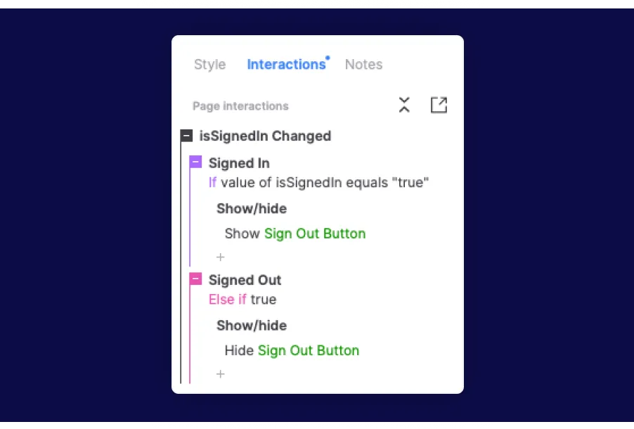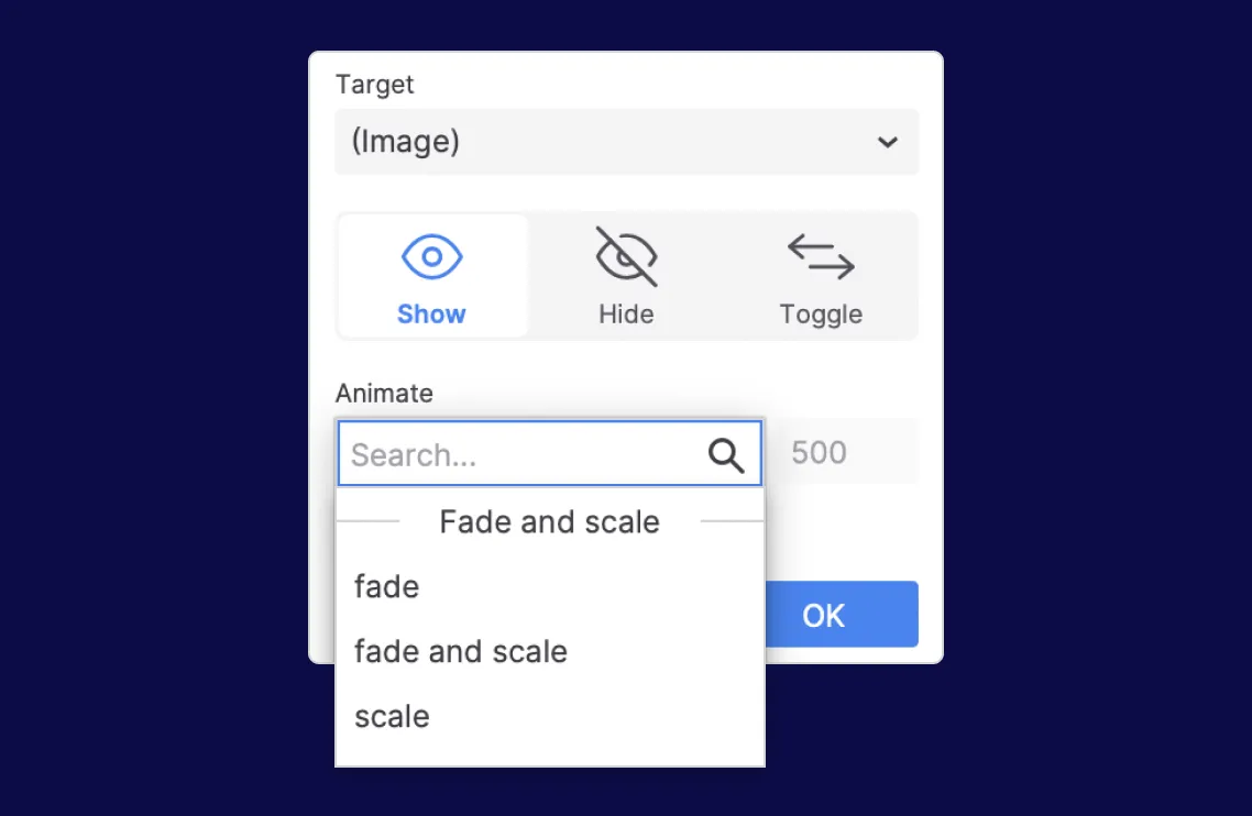 Choose from more easing options in interactions and use new scale animations in the Show/Hide action.