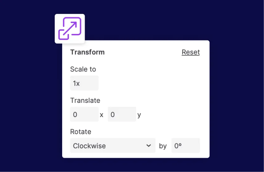 Scale, translate, or rotate a widget in a style effect or in the Apply Style action. You can also set the point of origin for scale and rotate transforms in style effects.
