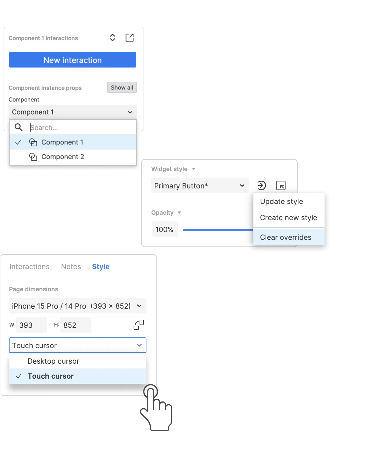 Toggle off the touch cursor to show the default cursor instead for mobile prototype pages.