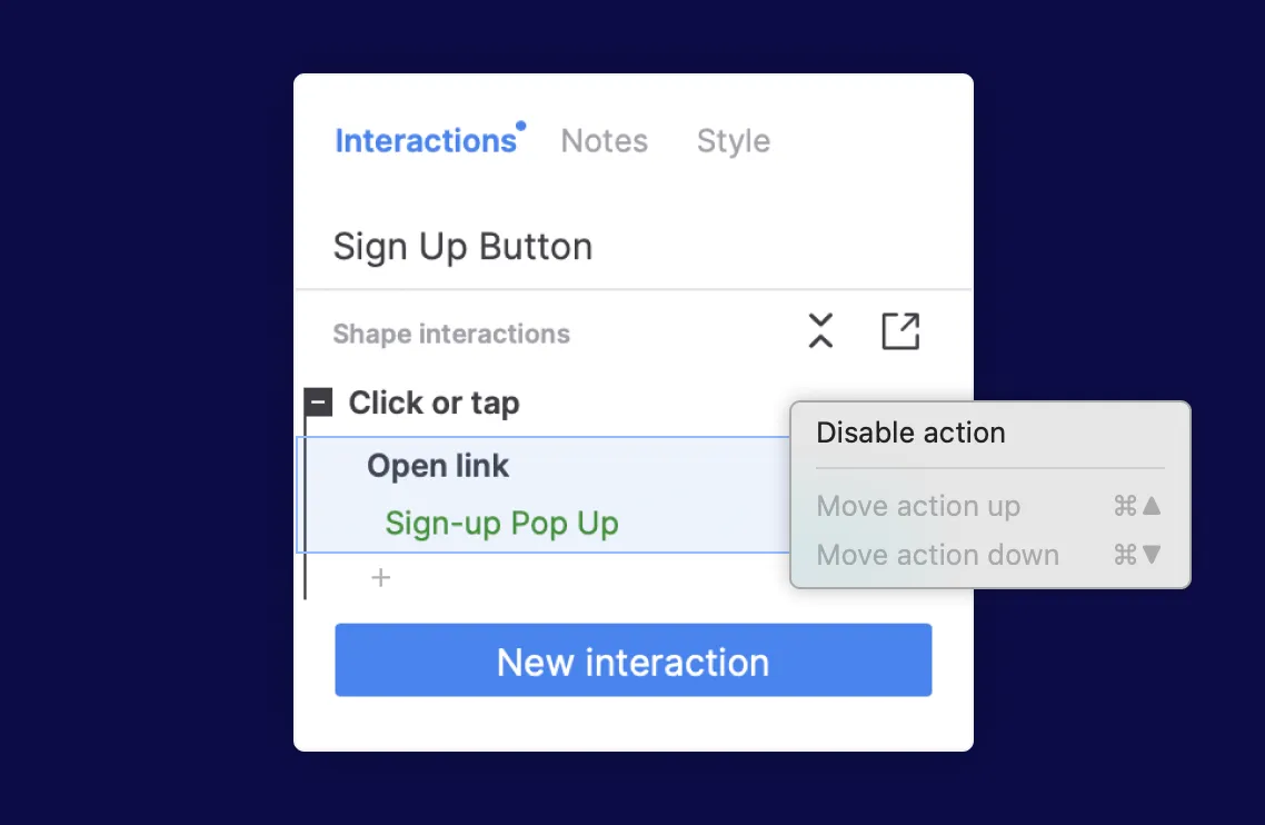 Right-click any event, case or action to temporarily disable it in the prototype when trying out different interactions.