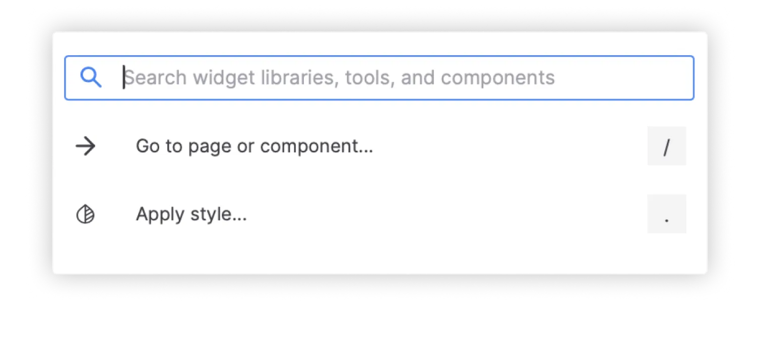 New in Axure RP 11, Quick Actions lets you quickly insert widgets and components, navigate pages, and apply widget styles with just a few taps on your keyboard. Press forward slash [/] to get started.