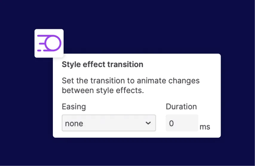 Set the transition to animate changes between style effects and in the Apply Style action. You can choose an easing option and set a duration for the animation.